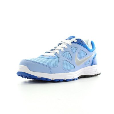 Détails techniquesTaille : 42Couleur : Bleu ciel, bleu royal, argent et blancFermeture : LacetsMatière : Cuir et synthétiqueSaison : Printemps / été Nike Revolution 488148400, Running Femme - taille 42?